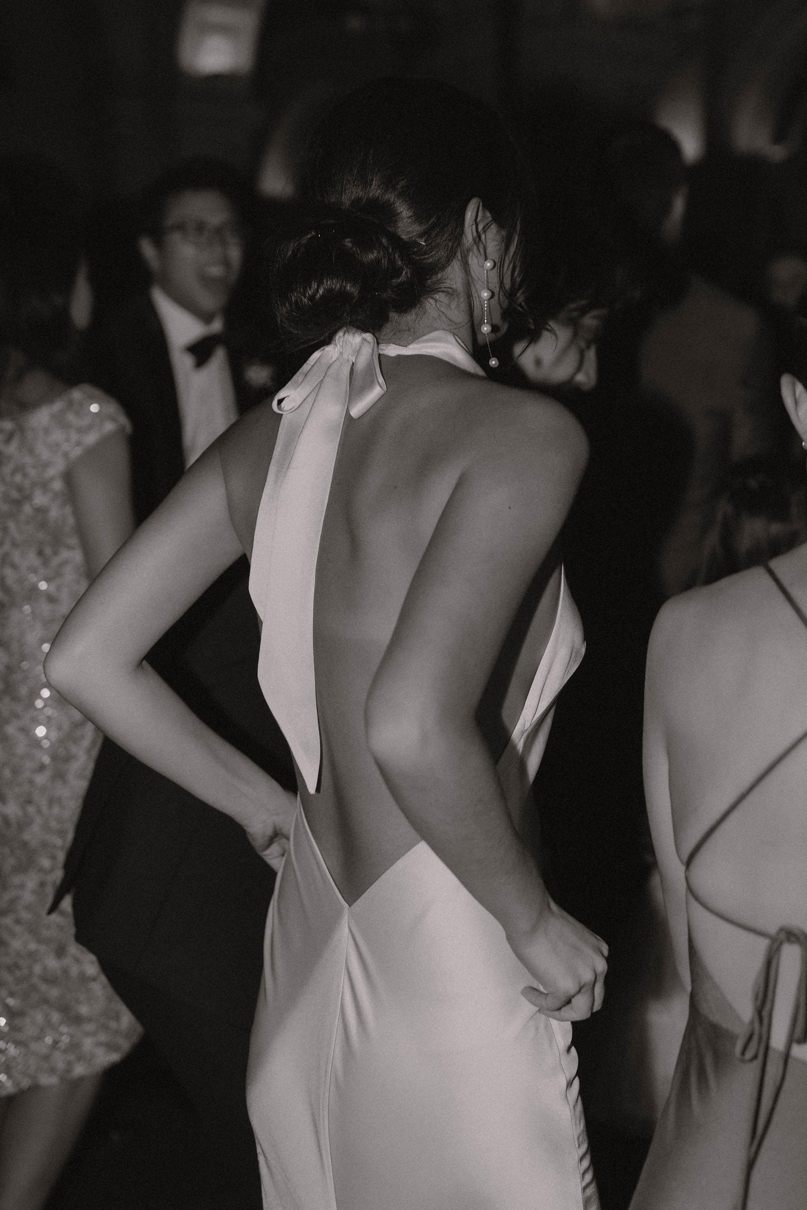 Fall in love with one of our favourite silhouettes, Goldie. Crafted from pearlescent satin, this halter-neck wedding dress is a flattering silhouette, featuring a dramatic low back and draped neckline.