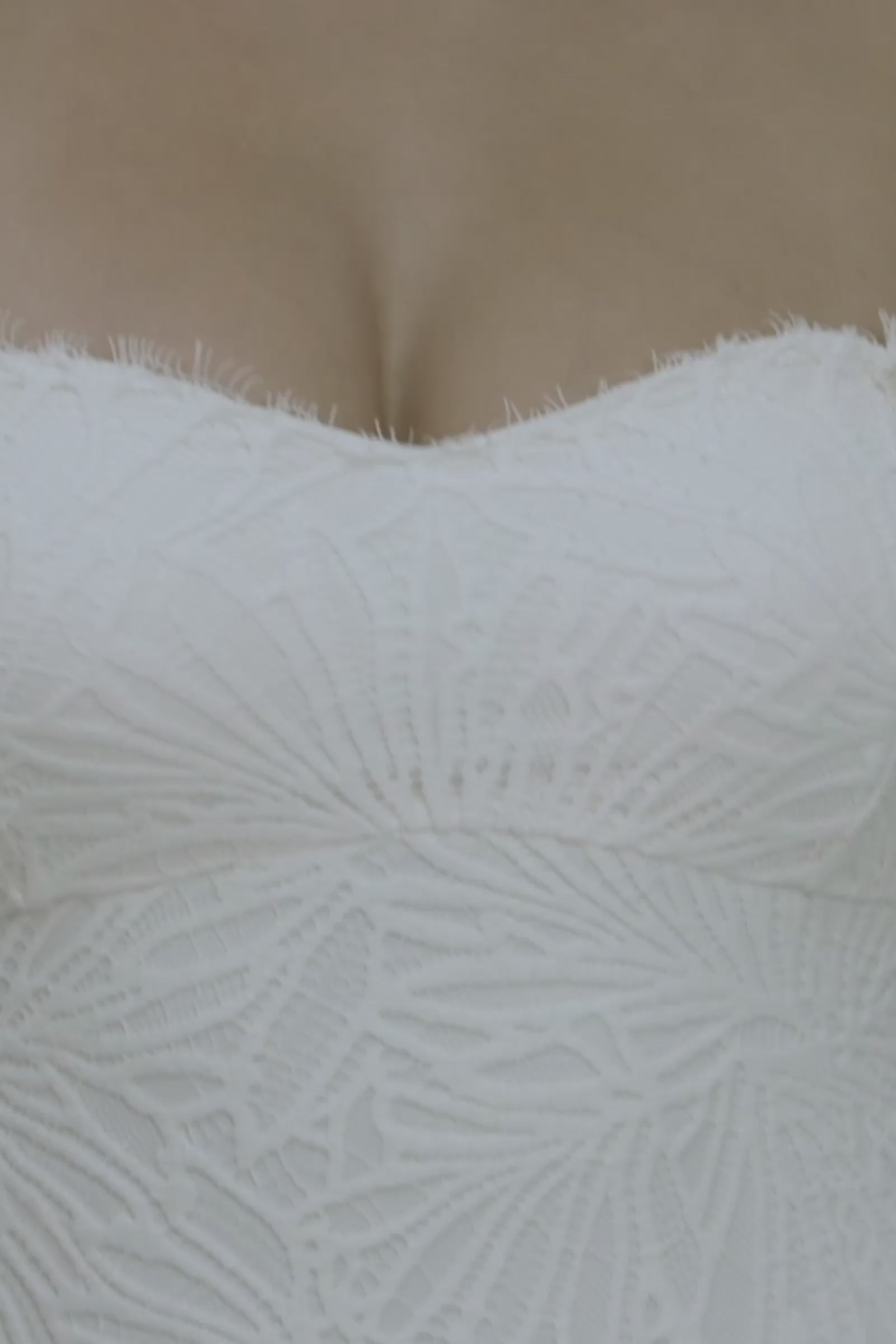• Strapless sweetheart neckline with eyelash lace