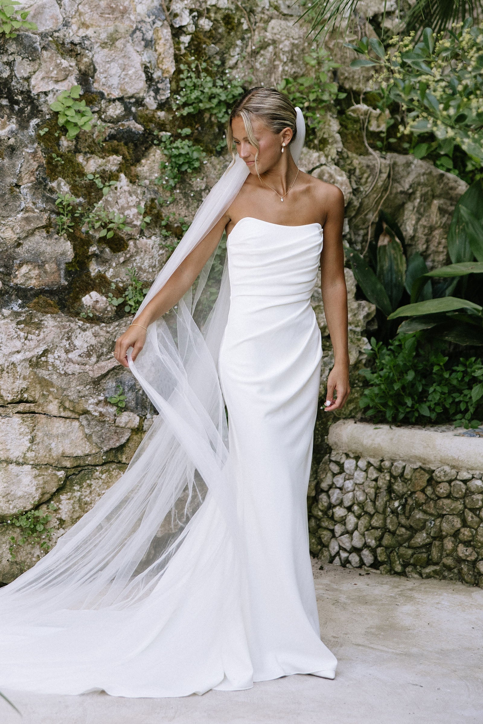 The perfect strapless crepe wedding dress does exist. Phoebe is defined by her simplicity, and she creates the most beautiful silhouette with built-in shapewear and flexible boning, designed to flatter the waist and create a timeless bridal look.