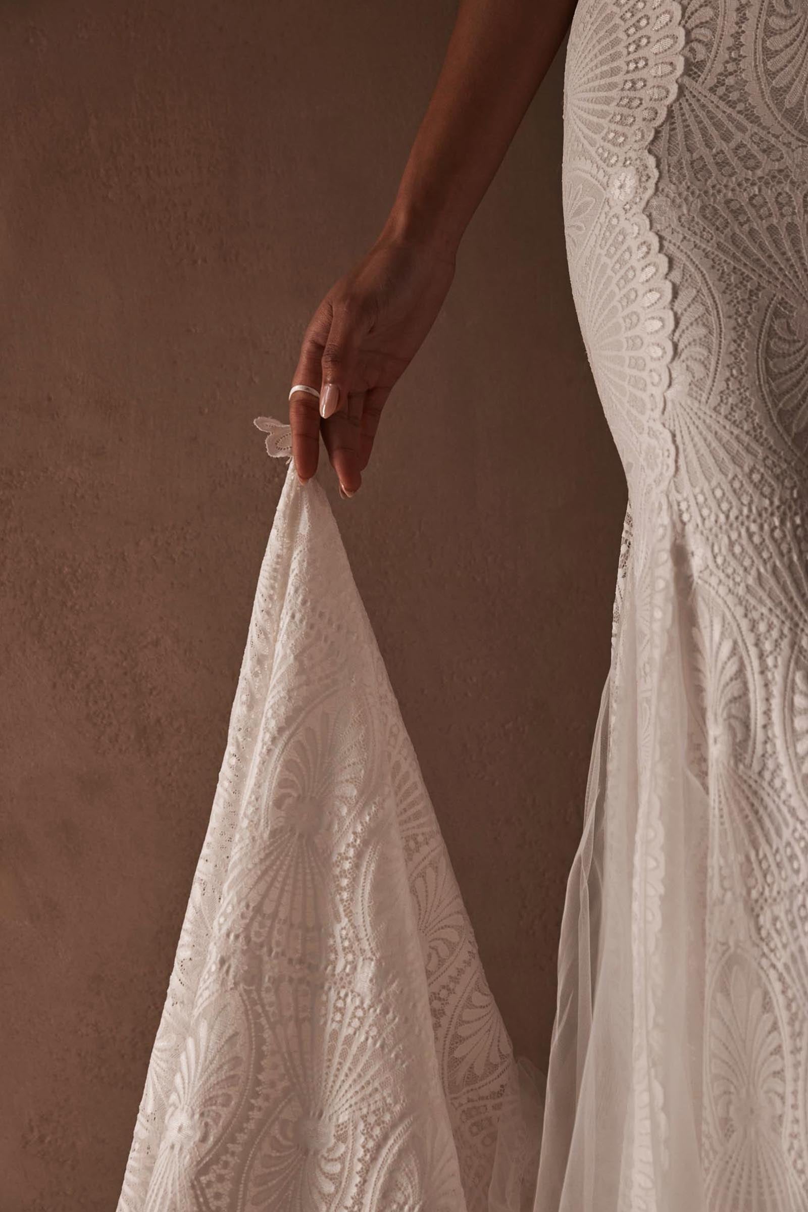 Sienna is made for the ultimate romantic. Crafted from 100% recycled lace, this lace wedding dress celebrates texture with a thoughtful interpretation of a traditional bride.